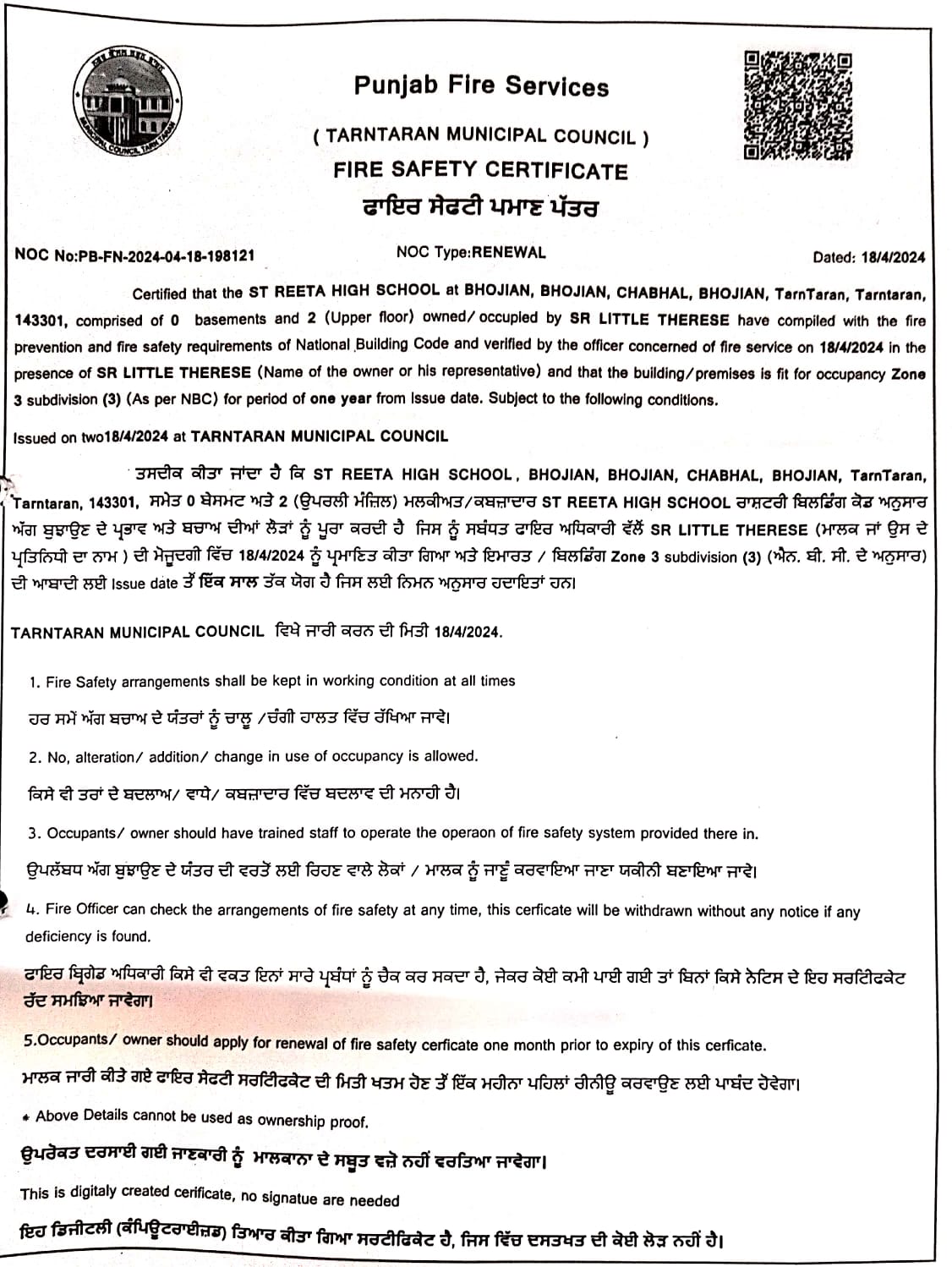 Saint Rita Sr. Sec. school, Bhojian is locally administrator by the sisters of the adoration congregation under the guidance and direction of managing director appointed by the dice of Jalandhar. The religious sisters who served in the various Christian institution in Punjab and elsewhere are people who are voluntarily involved to God to lead a holy and dedicated life of selfless service to their fellow human beings.